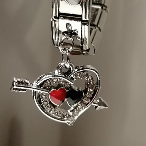 Rannekoru, 19 palaa. 18 sydänpalaa ja roikkuva siivet vaaleanpunaisella kivellä. Kestävä, ruostumatonta terästä. Uusi, joten sopii myös lahjaksi, Koru on venyvä, se on helppo sujauttaa ranteeseen, sopii lapsille ja aikuisille. siitä saa helposti pienennettyä ja suurennettua paloja lisäämällä tai poistamalla. Yhteensopiva Casa D'oro, nomination, charms yms. palakorujen kanssa. Katso myös muut kohteeni. Pakkaan tuotteen pieneen lahjarasiaan joka viimeisessä kuvassa Lisää palakoru ja muissa kohteissani.