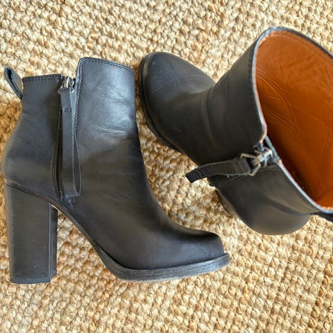 Kevyet saappaat, joita olen pitänyt vain muutaman kerran. Päällinen karvaa, ei paksua vuorta. Sisämitta noin 22cm, minulla 36, 5 kokoinen jalka ja täydellinen ohuella sukalla.