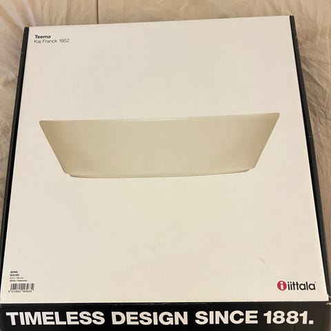 Iittala Teeman valkoinen tarjoilukulho. Ollut meillä tosi pienellä käytöllä. Ehjä. Pohjassa muutama mini "naarmu" tarkasti katsoessa. 1.65l.