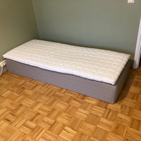 Sänky on ollut vähällä käytöllä, hankittu noin vuosi sitten ja myydään vain leveämmän sängyn tieltä.