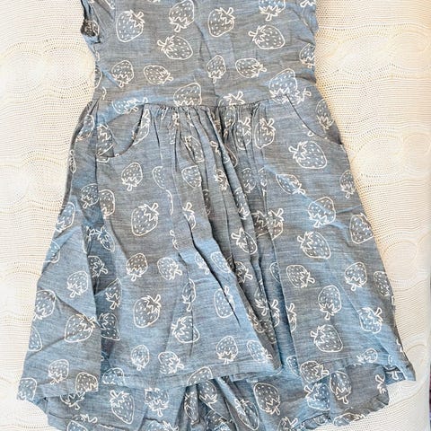 Jonkun ompelema päivänkakkara froteinen mekko . Melko vähälle käytölle jäänyt, edessä hailu jälki ( lisäkuva) näkyy huonosti ja jokunen langannyppäys. Pehmeää froteeta .