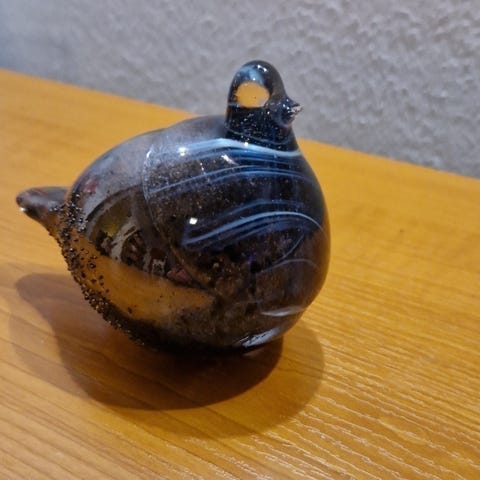 Hyväkuntoinen,ehjä ja siisti pieni lintu. Ollut koristeena hyllyssä. Korkeus 5,5cm.