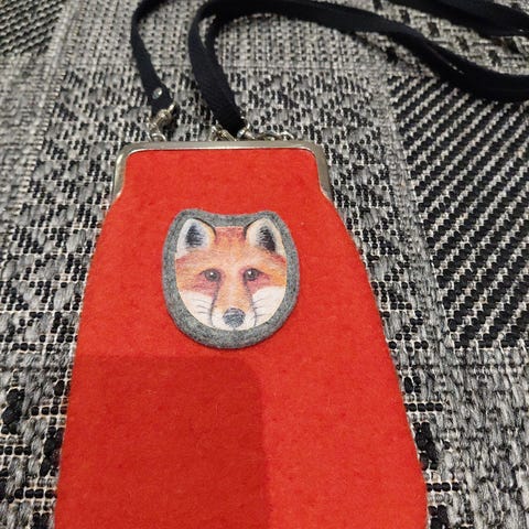 Käsintehty ruskea ja mintun värinen käsilaukku tehty ruskeasta huovasta
