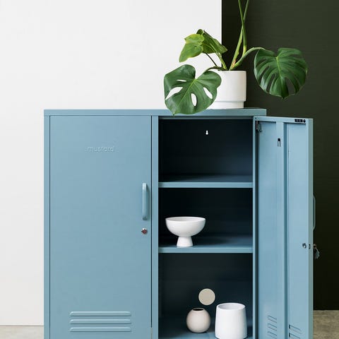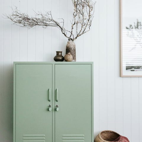 Lempinimellä "The Twinny" kulkeva suurikokoinen peltikaappi ajaa paikkansa lähes täysverisenä vaatekaappina ja tarjoaa uskomattoman määrän säilytystilaa. Neljä liikuteltavaa hyllyä ja kaksi vaatekiskoa mahdollistavat kaapin joustavan hyödyntämisen niin aikuisten kuin lasten tarpeisiin. Kaunis ja käytännöllinen peltikaappi tuo väriä ja iloa tilaan sellaisenaan tai voit sovittaa sen mainiosti yhteen myös muiden peltikaappien kanssa. Tuotetiedot Väri: Vaaleanvihreä, salvia Varustelu: Neljä hyllyä, joiden paikkaa voi vaihdella, kaksi vaatekiskoa sekä neljä koukkua (kaksi molemmissa ovissa). Ovissa on lukot ja mukana toimitetaan avaimet. Mitat: Korkeus 183cm, leveys 85cm, syvyys 50cm. Paino: 40 kg Kaapin kasaus: Kaappi toimitetaan kahtena pakettina ja se on helppo kasata itse mukana tulevien ohjeiden avulla. Kasaus ei vaadi muita työkaluja, kuin ruuvimeisselin ovenkahvan kiinnitykseen. Taustalevyssä on valmiit reiät ja mukana toimitetaan yleisruuvit, joilla kaapin voi kiinnittää tukevasti seinään. Ihastuttavat Mustard Made peltikaapit Mustard Made on kahden australialaisen siskoksen (Becca & Jess) vuonna 2018 perustama tuotemerkki. Brändi on vasta alkutaipaleellaan, mutta ihastuttavat peltikaapit ovat jo löytäneet tiensä lukuisien ennakkoluulottomien sisustajien koteihin ympäri maailmaa. Pinnijalkapoikien valikoimasta löydät suosituimmat Mustard Made tuotteet kotiasi piristämään ensimmäisenä Suomessa - näitä et vielä muualta saa!