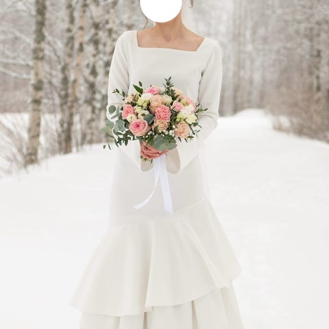 Häämekko tai hääpuku lyhyelle morsiammelle koko S