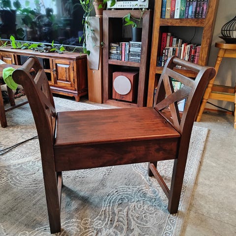 Tuoli on siistikuntoinen ja erittäin jämäkkä. Sopii hyvin yhteen akaasia- tai rustiikkisten puukalusteiden kanssa.