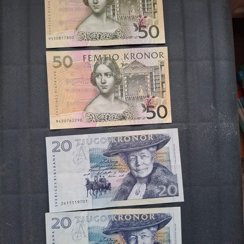 Ruotsalaiset kruunut 100 seteli ja 20 seteli