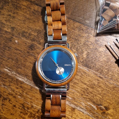 Myydään Aarni Sirius - Visakoivu rannekello + konjakin värinen hirvennahkainen kelloranneke. Kello on lähes käyttämätön ja patterin vaihto jää ostajalle. Rasian mukana tulee työkalut kellorannekkeen vaihtamiseen.
