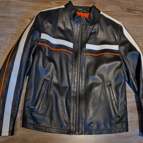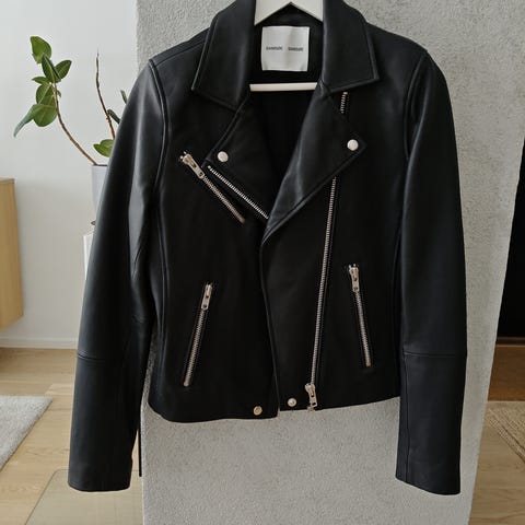 Biker-takki kestää aikaa, jossa on taattu tyylikkyys ja jota on täydennetty paksuilla metalliosilla. Biker-takki on leikattu pehmeästä nahasta ja on täysin vuorattu. Rohkeat metallivetoketjut kiinnittävät epäsymmetrisesti etuosan ja taskut antaen tiukan asenteen tälle mustalle nahkatakille.