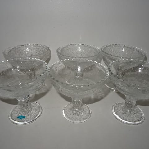 Kauniit ja ajattomat Nuutajärven Rosita-sarjan jalalliset jälkiruokakulhot.