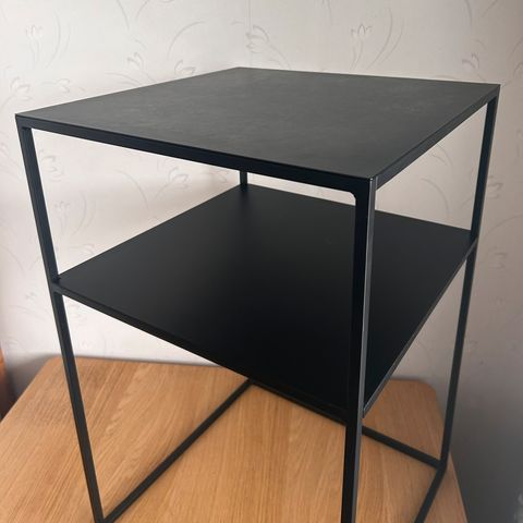 Metallinen sivupöytä/hylly. Pinnassa pientä kulumaa, yleisilme siisti. Clasohlsonista alunperin ovh 40e.