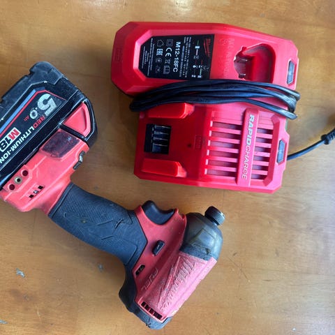 Milwaukee M18 pulttipyssy, porakone, akku & laturi