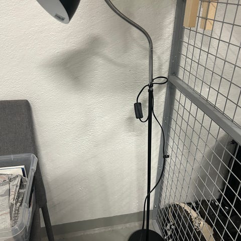 Myydään hyväkuntoinen, metallinen jalkavalaisin lukuvalolla. Yläosa on lasia, korkeus n. 180 cm. Lukuvalo säädettävissä.