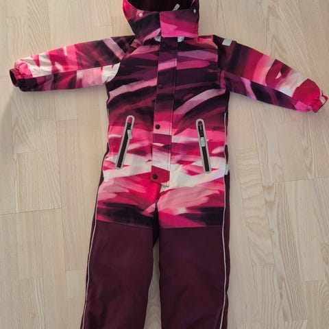 Reima toppahaalari, koko 110 cm. Neppareilla kiinnitettävä huppu. Muutamaa hihan sisäsaumassa olevaa kulumaa lukuunottamatta kohtuullisessa kunnossa arkikäyttöön (Kts. Kuvat hihoista ja myös lahkeista). Lämmin. Sopii niin tytölle kuin pojallekin.