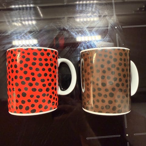 Myynnissä pikkuvialliset Peura- ja Mansikka-mukit (molemmat 2,5dl) yhteishintaan 20e. Peura-mukissa ulkopuolella selkeä pintanaarmu (ei näy mukin sisäpuolella) ja Mansikka-mukin kahvan kohdalla halkeama, joka näkyy selvästi mukin molemmilla puolilla (muki on silti täysin kasassa, kahva ei heilu). Vioista kolme viimeistä kuvaa. Mukit eivät ole olleet käytössä, vaan pelkästään koristeena.