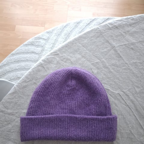 One Way -urheilumerkin lila naisten pipo pinkillä tupsulla.
