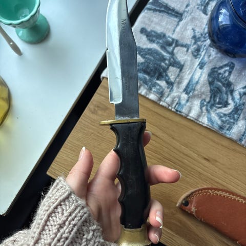 Neuvostoliittolainen pioneerikirves josta löytyy kaikki ominaisuudet vasarasta piikkilangan leikkaukseen. Pientä pintaruostetta ja tahraa on päässyt ne saa uusi omistaja käsitellä mielensä mukaisiksi.