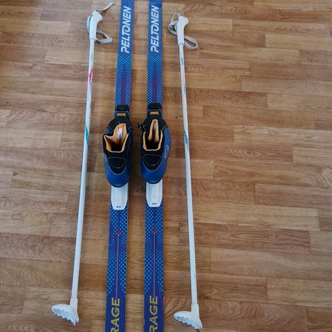 Myydään hyväkuntoinen käytetty suksipaketti lapselle perinteiseen hiihtoon koululiikuntaan kouluhiihtoon/ koululiikuntaan/ eskariin/ päiväkotiin. Siisti paketti.