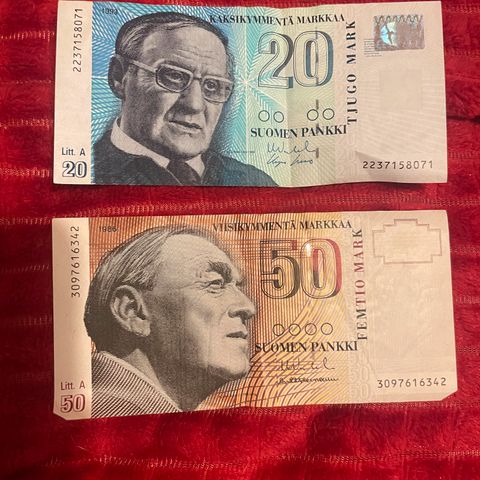 1x50, 2x20 markan setelit, kunto kuvissa.