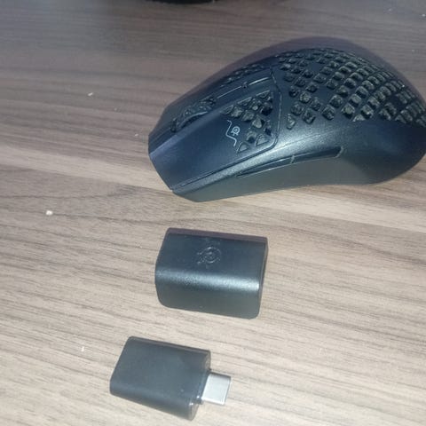 Selling a white SteelSeries Aerox 3 Wireless gaming mouse in very good condition. The white mouse skates are only lightly used and in good shape. It comes with all the original accessories (braided charging cable, wireless USB receiver, and adapter), but there is no original box.
