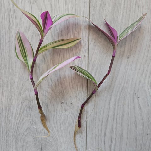 5kpl Tinantia pringlein juurtuneita pistokkaita. Myyn 2€/kpl tai kaikki 5kpl hintaan 8€. Viimeisessä kuvassa näkee millaisin kukin voi kukkia.