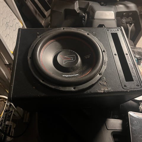Hyväkuntoinen mattamusta refleksi subwooferkotelo suoraan 90- luvulta. Viimeksi ollut käytössä joskus vuosituhannen vaihteessa, ja siitä asti ollut kuivassa varastossa. Kotelo on saumattu ja rakennettu ~14mm paksusta puusta. Asennusreikä on halkaisijaltaan noin 227mm ja refleksiputken halkaisija on 70mm. Kotelossa on selkeitä käytönjälkiä ja kulumaa, mutta kaikinpuolin hyvä kotelo jollekin vielä pitkäksi aikaa. Ei haise homeelta eikä ole kosteusvauriota.