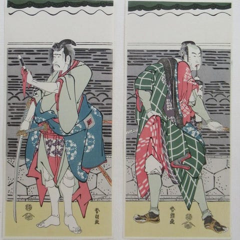 Actors Ichikawa Kigan and Bando Jutaro - Morikawa Chikashige 守川周重 (act.