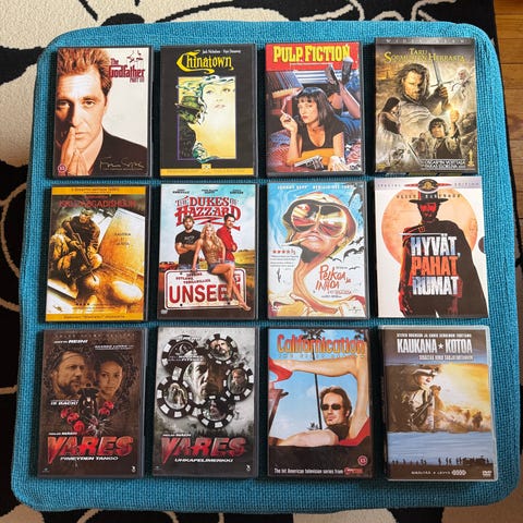 Nouto. Levyissä jälkiä mutta toimii. Matrix 1-3 5 euroa, beverly hills cop 1-3 7 euroa, rambo 1-5 10 euroa, expendables 1-3 4 euroa, scary movie 1-5 10 euroa, hobitti 1-3 4 euroa, poliisiopisto 1-7 10 euroa, xxx 1-3 5 euroa, hamekyttä 1-3 3 euroa, taru sormusten herrasta 1-3 4 euroa, deadpool 1-2 5 euroa, 48 tuntia 1-2 7 euroa, kyttäyskeikka 1-2 6 euroa, luokkakokous 1-2 2 euroa, lämäri 1-2 4 euroa, kasarikankkunen 1-2 4 euroa, ted 1-2 3 euroa, rush hour 1-3 5 euroa, taken 1-3 3 euroa, kauhea kankkunen 1-3 4 euroa, austin powers 1-3 5 euroa, indiana jones 1-4 10 euroa.