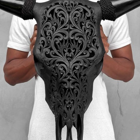Ei varaushintaa - Suuri harmaa käsin veistetty härän pääkallo - Iso