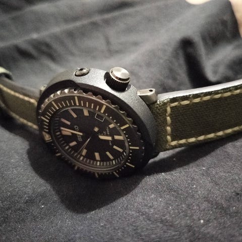 —// KUVAUS //—Malli: Seiko Prospex SSC017P1 miesten sukellusälykello Solar Quartz chronograph.Materiaali: Ruostumaton teräsAvaimen väri: MustaKellon koko: 42 mm ( kruunua lukuun ottamatta )Sovitus: Jopa 19,0 cm ranteeseen.liike: Seiko V175 Solar Quartz chronograph -liikeAkun varaus: Jopa 6 kuukauttaToiminnot: Ajan seuranta, aurinkokäyttöinen lataus, kronograf, päivämäärä, kääntyvä sukelluskehys,hehkuvat kädet ja tuntimerkinnät, pulttilukkoiset kruunut.—// PAKKAUS //—Alkuperäinen laatikko: EiAlkuperäiset paperit: Ei—// TILANNE //—Kotelon kulumaa: * [joitain karheus- ja pienet naarmut kotelossa. Ei merkittäviä kolhuja tai leikkauksia]Kotelon takakannen kulumaa: *(*) [karheus- ja pienet naarmut]Kellotaulun lasin kulumaa: * [pienehköjä naarmuja lasissa noin 7 kohdalla] Pieni sisäinen pölyKellotaulun kulumaa: -Kädet: -Kehyksen kulumaa: * [pienet käytön merkit kehyksen sisäosassa. Kehä pyörii ja napsauttaa sujuvasti]Kruunun kulumaa: * [yläkruunu ja keskikruunu toimii tiukasti; ala-kruunun kääntäminen ja lukitus ei toimi]Rannekkeen tai hihnan kuluma (taatut annettu sovitus): - [Seiko S/S ranneke, 10 linkkiä kiinnitetty]Jälkeenmarkkinoiden kumihihnan kuluma: - [Seiko Z20 kumihihnat, Seiko metallinen solki]TILANNEEN VAHvistus- None (Paras)* Ei merkittäviä** Pieni*** Keskikoko**** Painava***** Vahingoittunut (Worst)