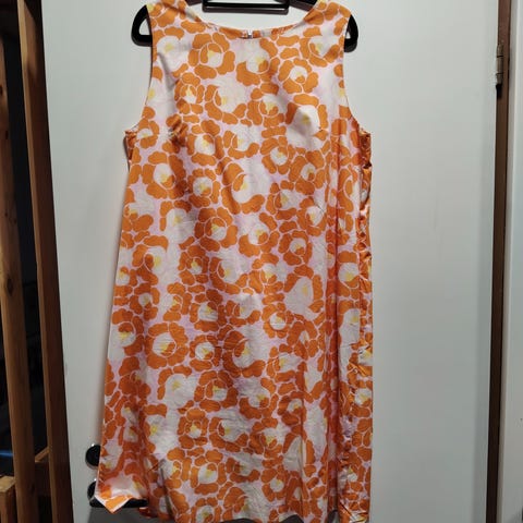 Kevyt, laskeutuva, hieman A-mallinen marimekon mekko. Vetoketju takana, taskut sivuilla. Nouto Jämsä tai postit lisätään.