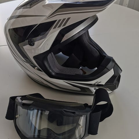 Sopiva kypärä moottorikelkkailuun tai muuhun talviurheiluun tai pyöräurheiluun. Kunto kohtalainen, sivuosissa kulumianja halkeamia, itse kypärä suht hyväkuntoinen. Koko L