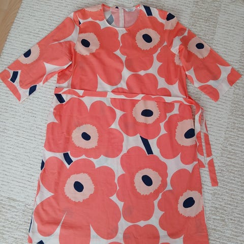 Yhdet juhlat juhlittu Marimekon mekko. Alusmekko, vetoketju takana, taskut sivuilla. Kai-kai n. 55cm, olka-helma n. 98cm. Nouto Jämsä tai postit lisätään