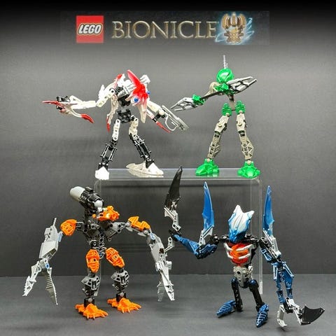 Lego - Bionicle - 8912 / 8911 / 8903 / 8564 / 8543Koko erä koostuu viidestä alkuperäisestä LEGO Bionicle -setistä, jotka kuuluvat suositun Bionicle-sarjan sarjaanKunto ja täydellisyysSetit myydään kuvatulla tavalla (ole hyvä ja tarkista kuvat huolellisesti sisällön ja kunnon varalta)• Hyvässä, käytetyssä kunnossa• Joillakin mukana ohjekirjat• Osat siististi pakattu korvaavaan pakkaukseen• Kevyet käytön jäljet saattavat esiintyä• Värit voivat hieman poiketa iän myötä• Seteissä voi puuttua joitakin osia tai ne voivat sisältää korvattuja osia• Joidenkin osien väriksi on käytetty toista väriäToimitus• Vakuutettu toimitus• Seurattavissa (Track & Trace)• Erittäin huolellisesti pakattu• Yhdistetty toimitus mahdollinen useammille erillePleksiteline ei sisälly erään.
