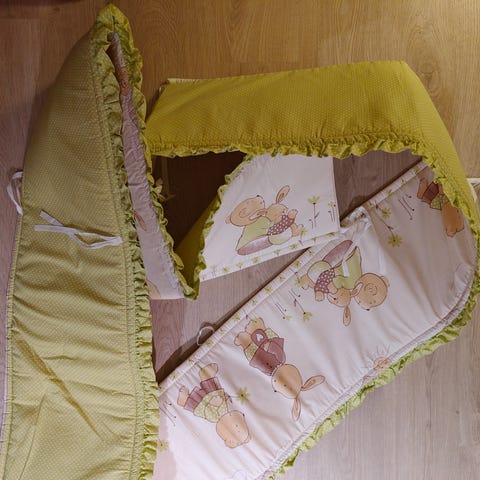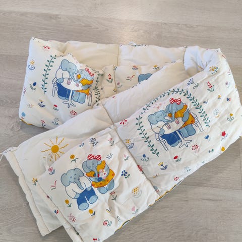 Myydään Konges Sløjdin ihana beige/kukkakuvioinen pinnasängyn reunapehmuste. Siisti ja hyväkuntoinen, pesty hajusteettomalla pesuaineella ennen myyntiä. Mitat: 360cm x 30cm.