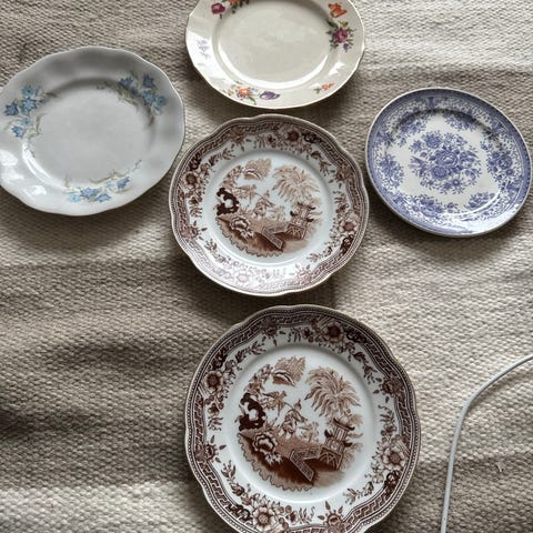 Arabia lautaset vaaleanpunaista posliinia, sointu sarjaa luulisin. 3 kpl pientä ja 3kpl vähän isompia