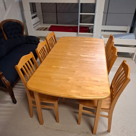 Ruokailuryhmä pöytä ja 6 kpl tuoleja