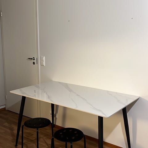 Ovh. 519 € https://www.kallenkaluste.fi/fi/product/25641/edna-lankkupoyta-90x140-tammi-metalli-jalka
