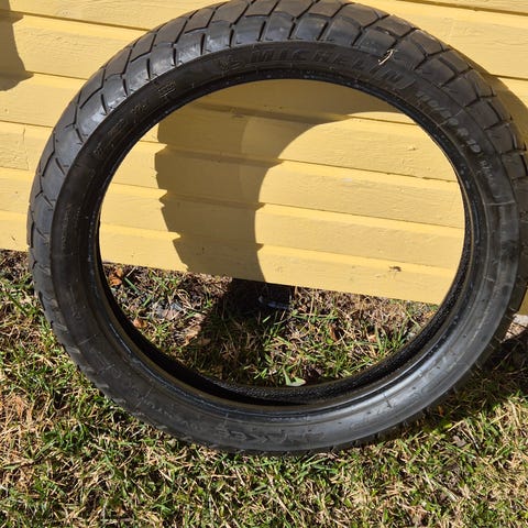 Dunlop Trailmax mixtour 110/80/R19 59H. Käytetyt, mutta jäänyt lämpimään varastoon nappularenkaiden vaihdon jälkeen. Hiekka/asfaltti. Rengas Porvoossa. Nouto tai kuljetus sovittaessa.