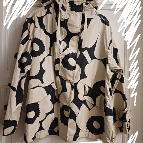 Marimekko Ystävyys Pieni Piirto Unikko 2 farkkutakki. Koko S, vastaa M-L. Todella hyvässä kunnossa, vaan muutama kertaa pidetty.