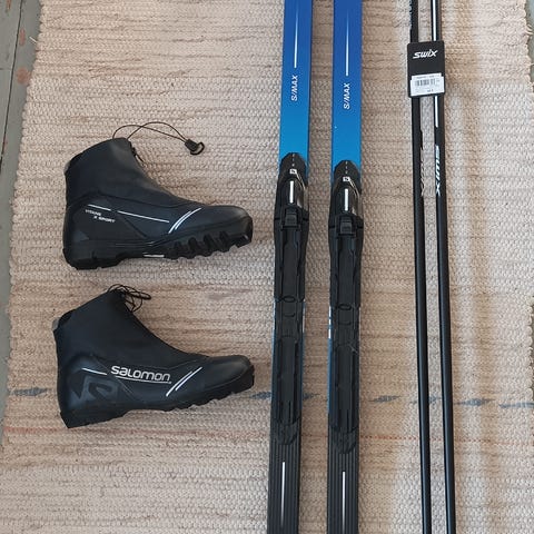 Tästä huippukuntoinen suksipaketti seuraavalle. Muutaman kerran hiihdetty näillä.