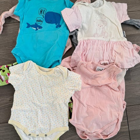 Vauvan housut, potkuhousut ja pijamat, koko 62, joku on 68. Hyvässä kunnossa. 15 kpl
