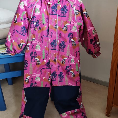 Annetaan lasten 104 kokoiset ulkovaatteet (haalarissa lukee koko 100). Haalarissa pepussa reikä. Näkyy kuvassa. On kuluneita mutta jos jollekin kelpaa vielä niin saa hakea kivistöstä.