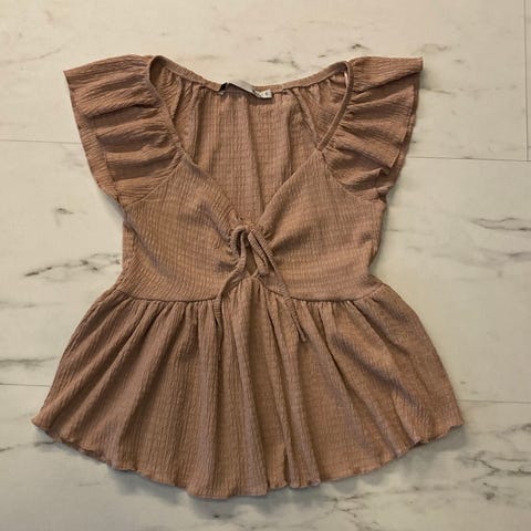 Käyttämätön olkapäät paljaaksi jättävä kellohihainen pusero XS-S kokoiselle. Rypistymätön materiaali.