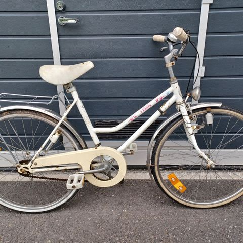 Täysin toimiva 3-vaihteinen lasten pyörä. Shimano Nexus-napavaihteet. Jalkajarru takarenkaalle, vannejarru eturenkaalle. Joustokeula. Uusi vaihteen valitsin, vaihdevaijeri ja satula. Renkaat 24". Runkokoko 30 cm (sopiva yli 120 cm pituisille).