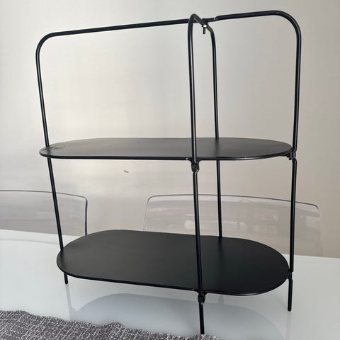 Musta metallinen hylly, jonka saa seinälle☺️ ei käytön jälkiä