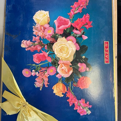 Vanhan ajan pitkänmallinen Hellas suklaarasia , sisältänyt Lady Sylvia valikoituja suklaakonvehteja 600 g. Suklaatehdas Hellas Turku. Rasian mitat: 40,5 x 15,9 x 3,3 cm.