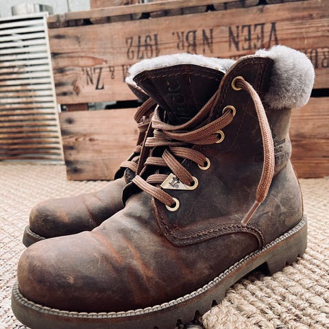 Ehjät ja siistit nahkaa olevat talvikengät. Kärjissä haalistumaa,rasvaamalla saa kiiltioa.