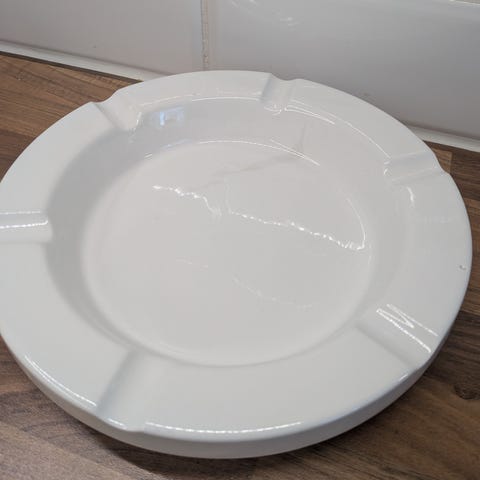 Kirkas lasinen tuhkakuppi. Perinteinen tuhkis. Täysin ehjä. Oli kaksi kokoelmissa, niin joutaa toinen pois.