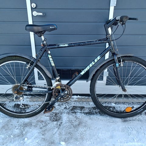 Täysin toimiva 21-vaihteinen naisten pyörä 80-luvulta. Vannejarrut. Uusi satula. Renkaat 26". Runkokoko 43 cm (sopiva yli 155 cm pituisille).